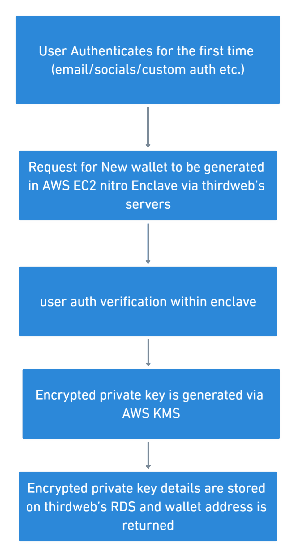 • User authentication data is verified within the enclave, ensuring that only legitimate, authenticated users can initiate wallet creation.